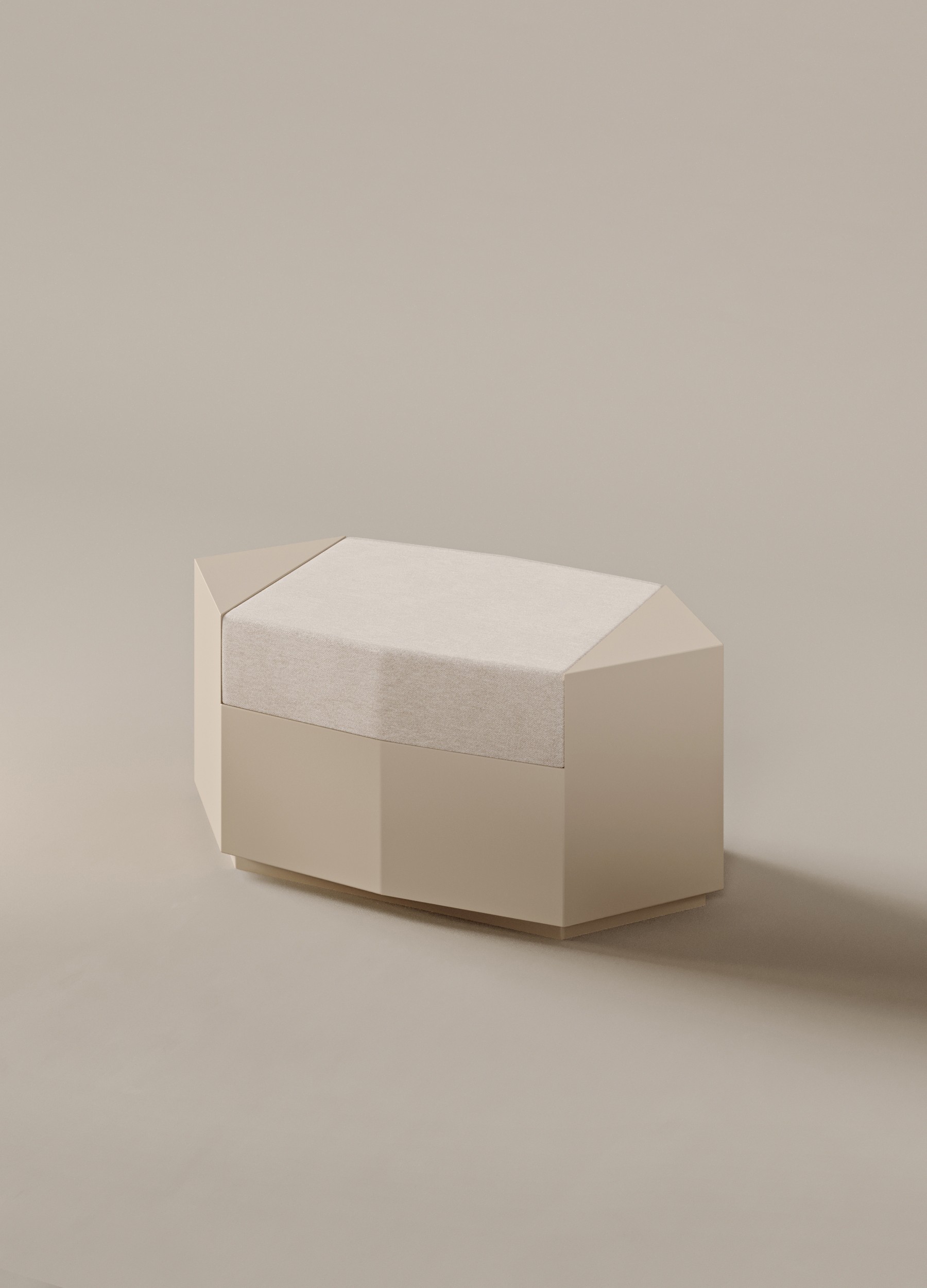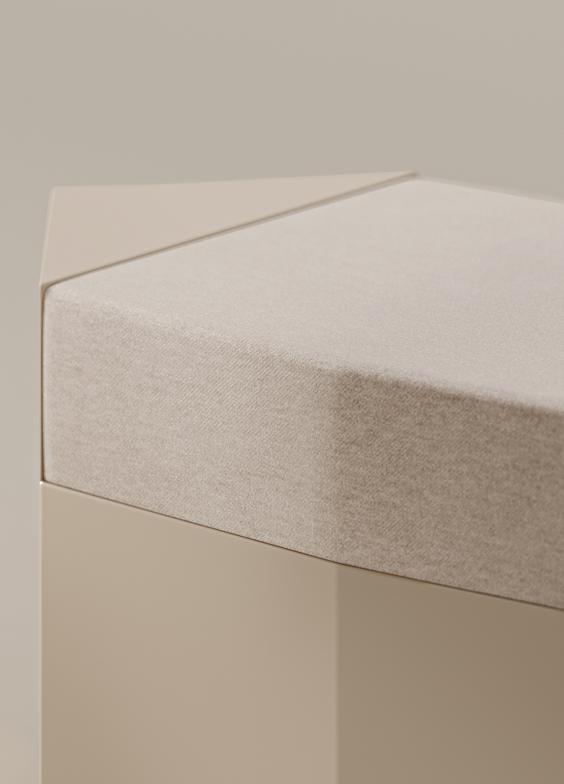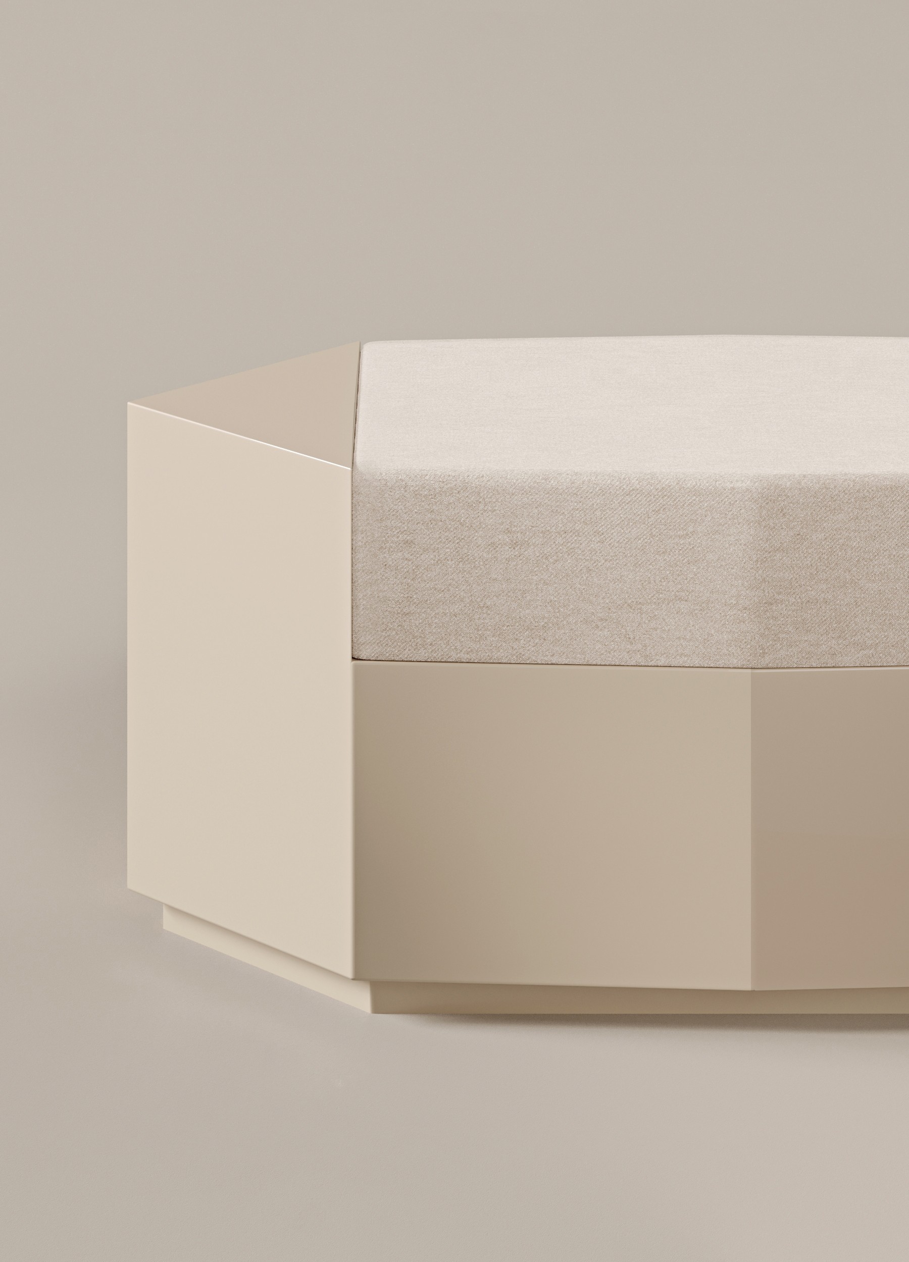 Oyster glossy lacquered MDF and seat in velvet ivory