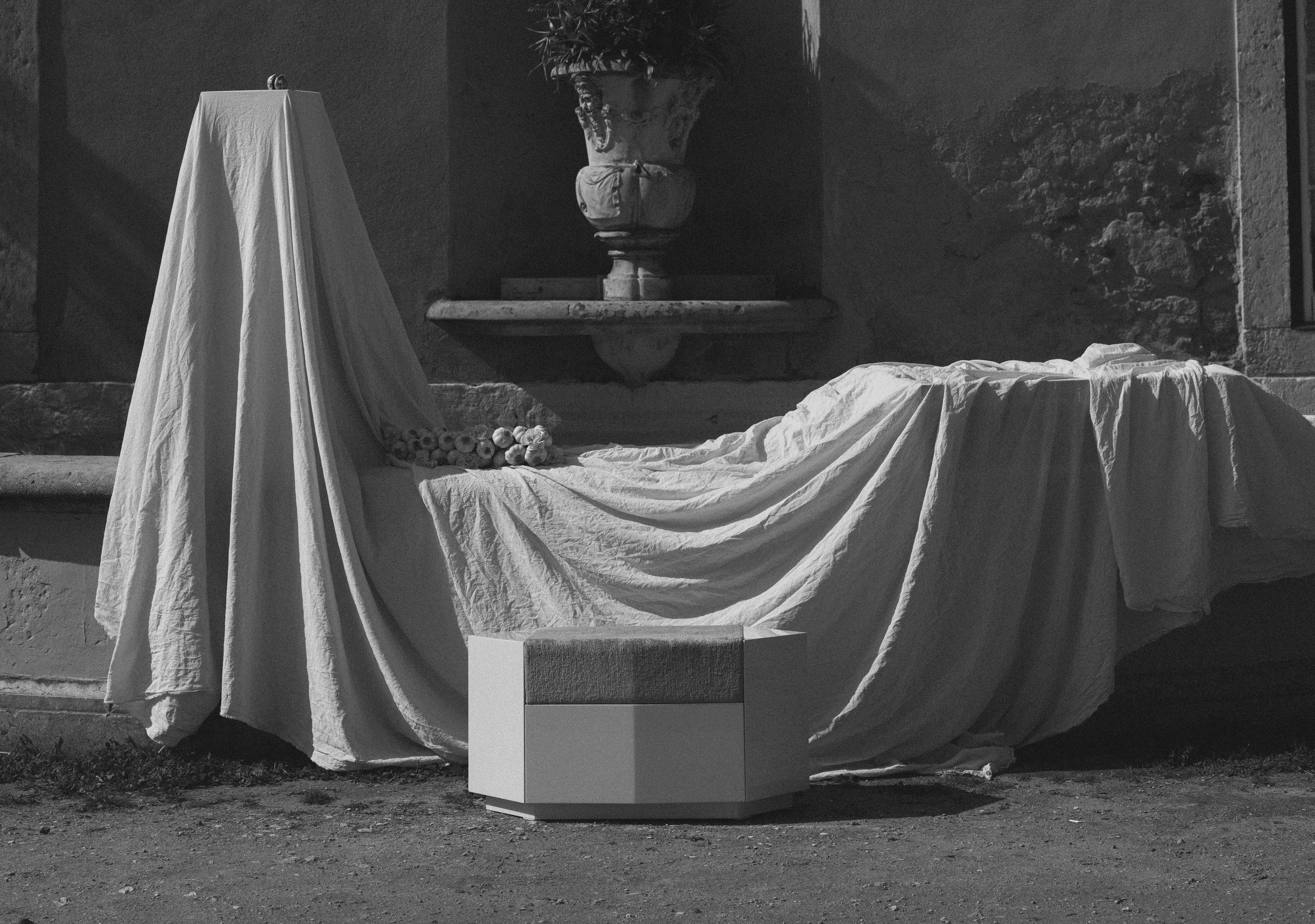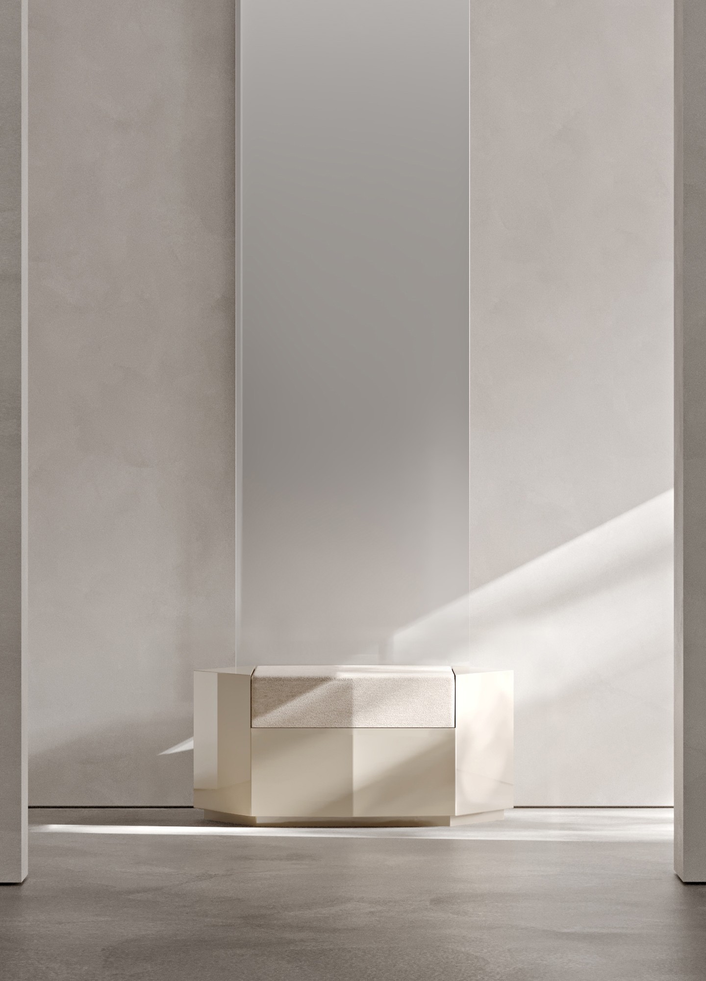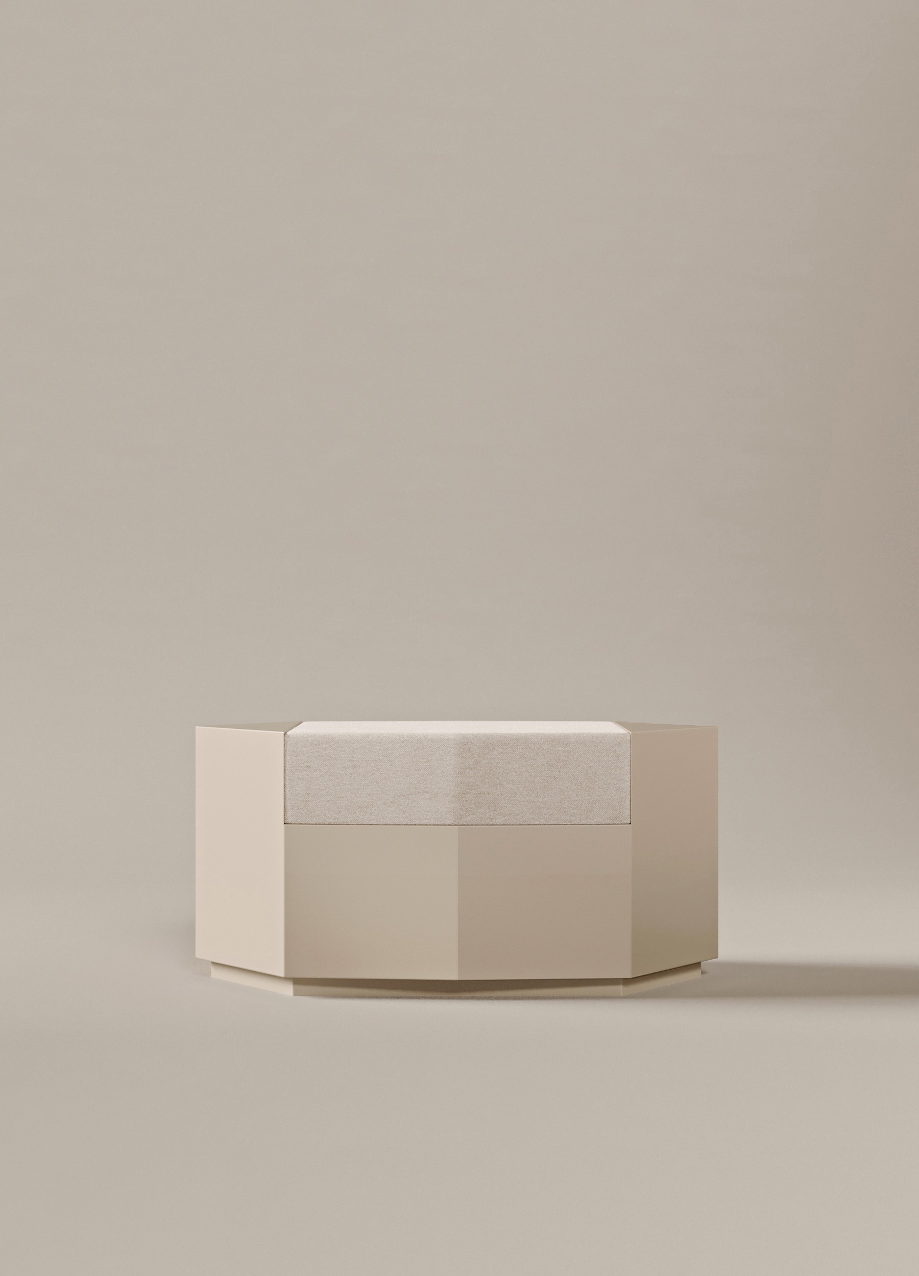 Oyster glossy lacquered MDF and seat in velvet ivory