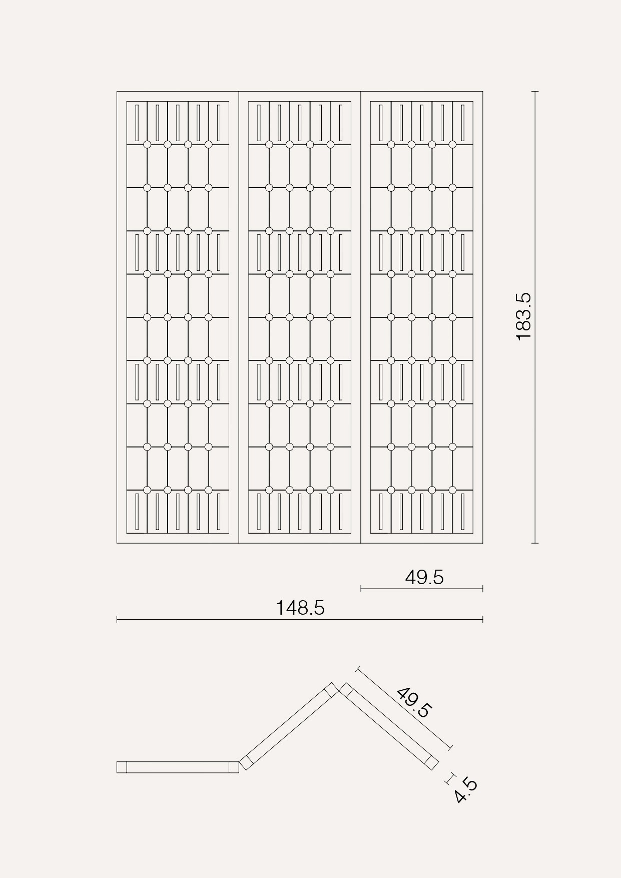 cm H 183.5 x W 4.5 x L 148.5 inch H 72.24” x W 1.77” x L 58.46”